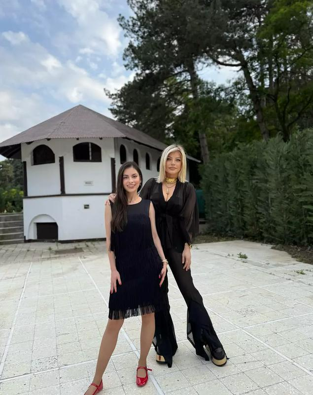 În imaginile surprinse la fața locului, Loredana apare ținând geanta în mână, impecabil aranjată, în timp ce fiica o însoțea la ceremonia funerară.